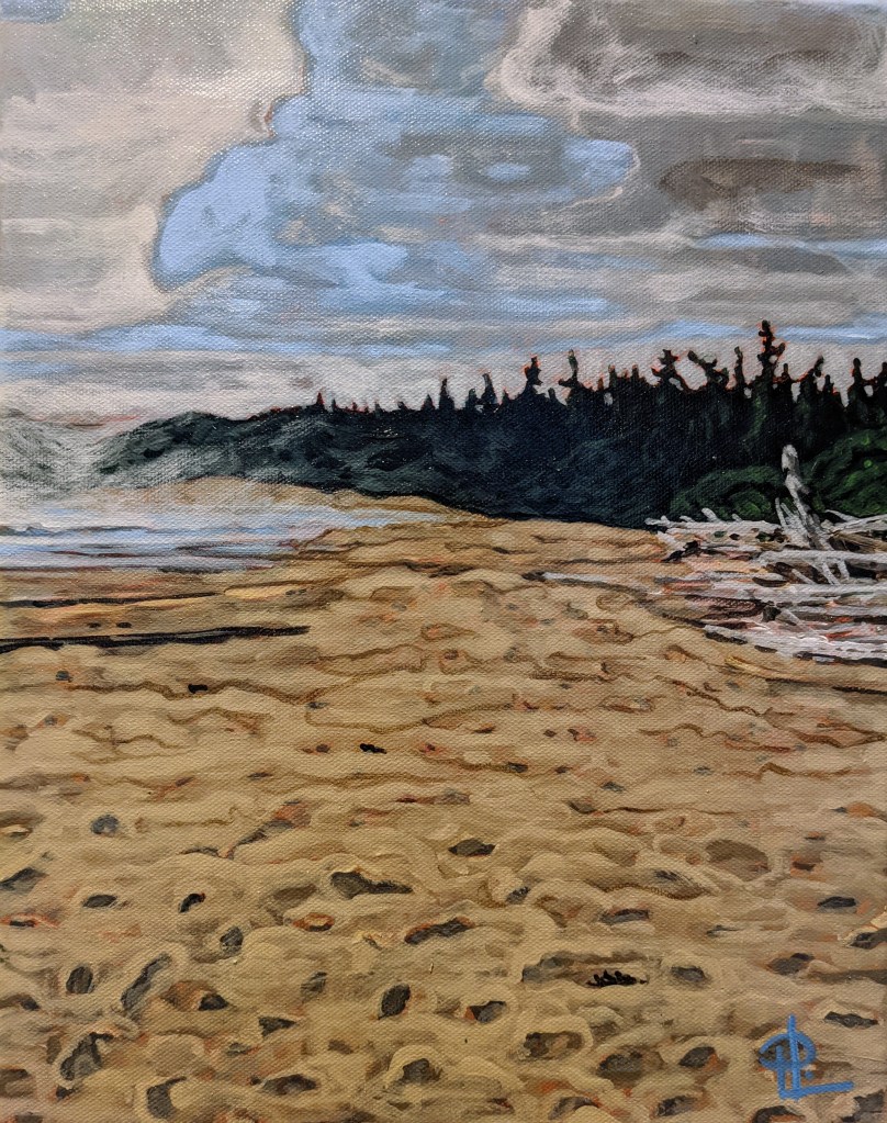I am back to work now and have taken on a big community volunteer project so painting time is pretty limited. I did, however, find time to finish this latest as it was a birthday request from my oldest. The family had made our first trip to Vancouver Island this summer with the highlight being our visit to Uclulet and Tofino. It absolutely blew my kids’ minds and ended with pleas to move there. While that is not going to happen (it rains there 3/4 of the year, for one thing…) I totally get it. That place is powerful. So while we will not be moving there I am more than happy to try and recreate a little of the magic for my child’s wall. The painting has sufficed for now – with promises that we will go back to Tofino some day soon.